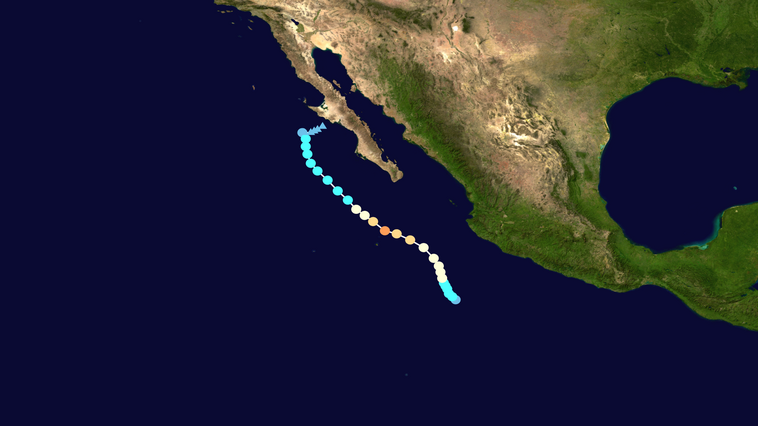 Tropical Storm Mario, that had formed Sep12 off the coast of Acapulco, headed northwestward and passed by the Baja Peninsula on Sep 15.