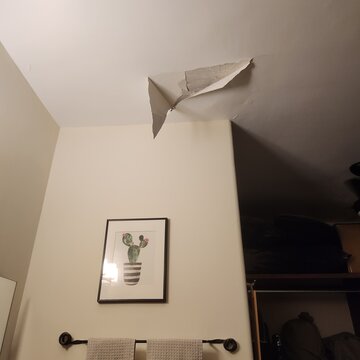 After Priscilla was gone, we noticed further water damage to our bathroom ceiling due to the roof leak. We asked David if he could also repair this and he confirmed that he would be able to fix it when he worked on the AC unit.