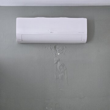 While getting ready to go to sleep this night, we felt some water drip onto our heads. Our bedroom AC unit is on the wall above our bed, and the occasional drip is not totally unusual, as sometimes there is too much humidity in the air, so that the AC unit forms condensation, which can drip off the edge of the unit. However, these drips were larger and seemed to be dripping off the edge of the headboard. Then we noticed water was leaking from the AC down the wall, landing on the headboard.