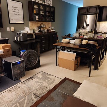 Everything was strategically placed on the kitchen island and all over the living room, along with all the stuff that we had already moved out of the guest room. I was starting to feel like a bit of a hoarder… LOL! It was only for two days; we were sure we could live with the inconvenience.