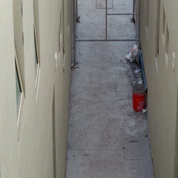 David and his crew arrived bright and early to begin the repair. Scaffolding was built between the buildings, and the chiselling of the concrete walls began. They needed to dig out the coolant pipes from the current wall that the AC was on, to move them to the new wall where the AC would be going. This process was loud and unnerving, and I’m sure our neighbours hated us for it!