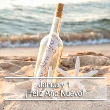 ¡Feliz Año Nuevo! (Happy New Year!) The first day of the new year is another day of rest (and recovery). Many families spend the day at home, relaxing and enjoying leftovers, while other families simply head to the beach to enjoy the sun, sand, and surf.