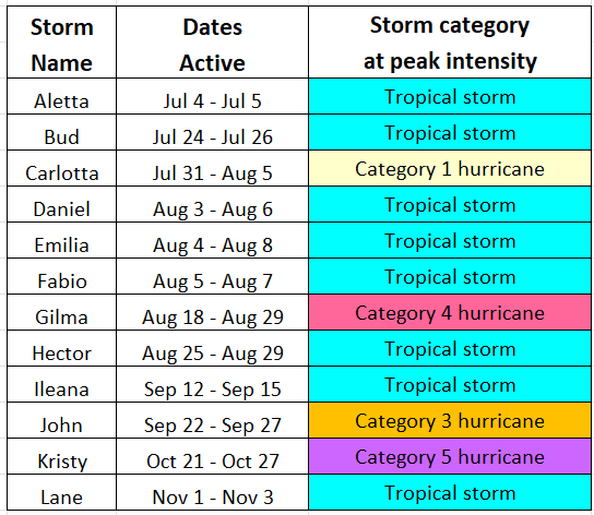In our region, 12 named storms formed; eight of those were tropical storms and the other four became hurricanes, of which three strengthened into major hurricanes (Cat 3 and higher).