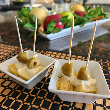 Lorne created an Amuse bouche for us, which consisted of Artichoke hearts with a green olive (Aceituna in Spanish) and garlic Aioli. A perfect little bite!