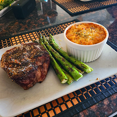 When dinner time rolled around, we enjoyed a delicious meal of Angus steak, Asparagus and Au gratin potatoes.