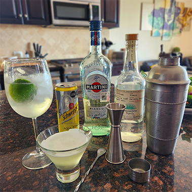 Along with our Amuse bouche, we enjoyed an Aperitivo. I had vermouth and tonic and Lorne had a dirty tequila martini.