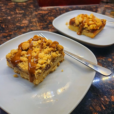 For dessert, I made Apple streusel bars with a salted caramel drizzle on top.