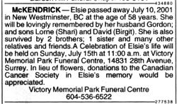 Twenty-one years ago, Shari and I (and kids) were on our way home from a vacation road trip when we got the call that my mom was in hospital not doing so well. She had been sick for quite some time, but we did not realize that she had declined so suddenly. We made it to the hospital that night in time to visit. Early the next morning, on July 10, 2001, my mom – Elsie – passed away. She was 58 years old.